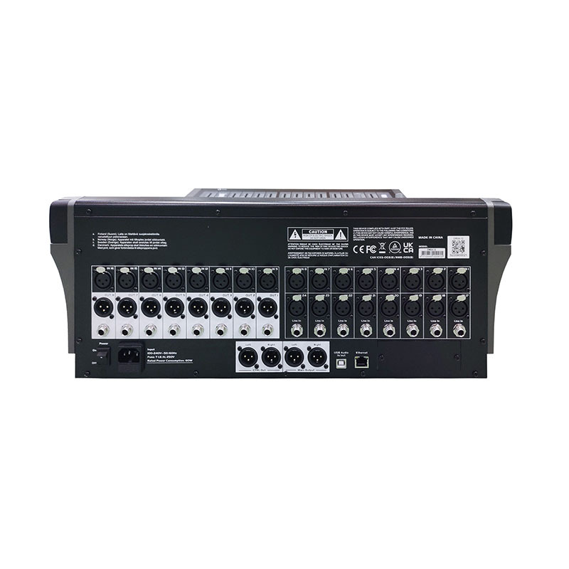 - 24 аналоговых входа XLR и 8 линейных входов TRS с цифровой регулировкой усиления