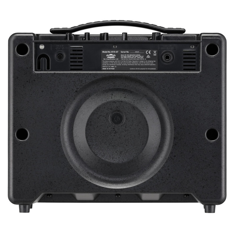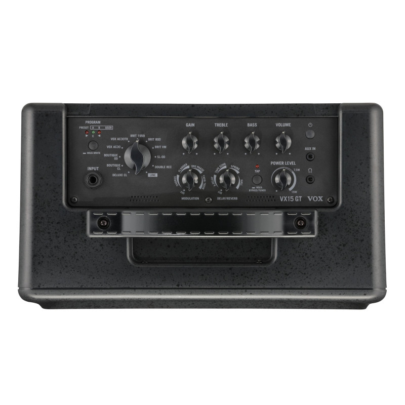 VOX VX15-GT является доступным моделирующим комбоусилителем, который дает музыканту возможность познакомиться со многими аутентичными гитарными тембрами и эффектами, обеспечивает удобное и функциональное использование, позволяя играть в ночное время суток и легко осуществлять запись без микрофонов, а также отличается компактностью и малыми габаритами. Корпус выполнен из прочного и легкого ABS-пластика и оборудован удобной ручкой для транспортировки.