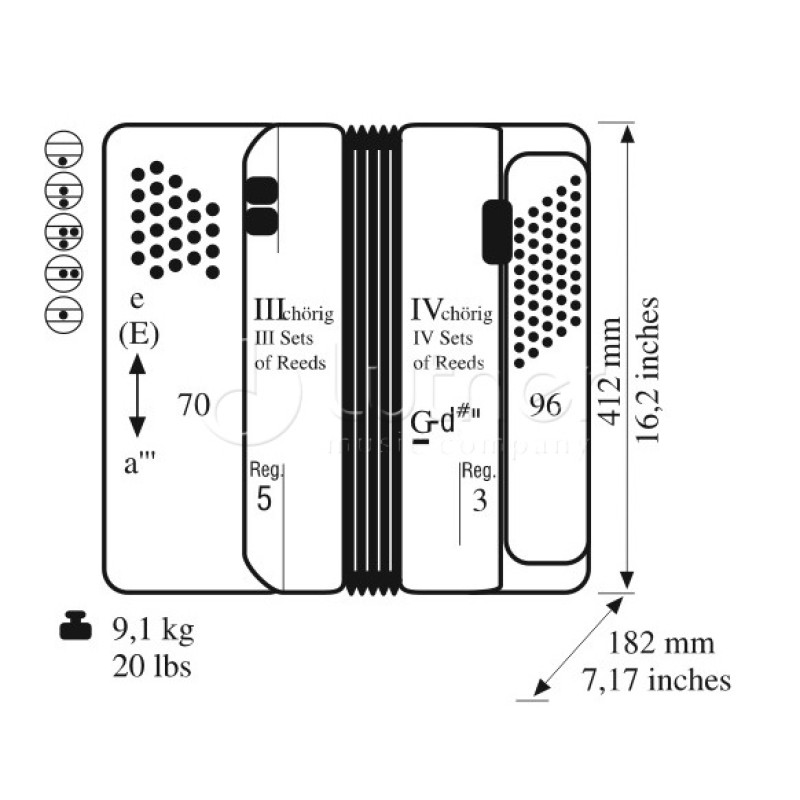 - Модель:Аккордеон кнопочный 70/96/III/5/3, белый