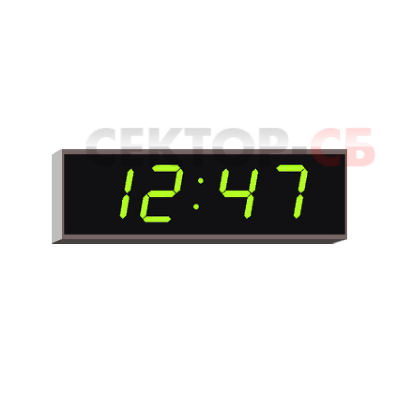 WHARTON 401A.057.G.S Цифровые часы (670х180х58мм), высота символов: минуты 120 мм, секунды 100 мм, зеленые символы, настенное крепление с возможностью изменять уровень наклона