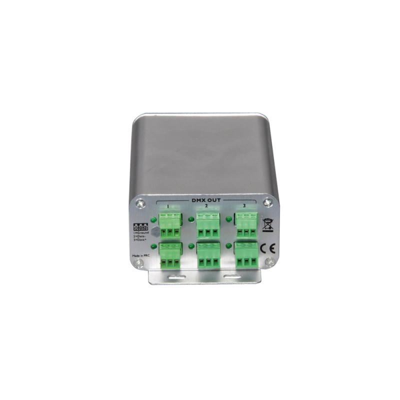 Дистрибьютор DMX сигнала используется в случаях, когда необходимо получить из одной линии DMX упраления несколько, без потери сигнала и наводок.