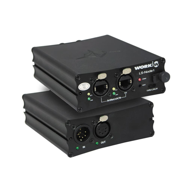 Work LS NODE 1 - Узел передачи RDM/DMX через Ethernet, 1 вход/1 выход RDM/DMX, совместим с консолями LightShark, поддержка ArtNet и sACN, питание PoE или через USB-C, WORK