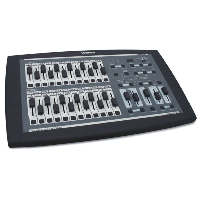 24 контрольных DMX канала ( 2 х 12 для двух независимых сцен).