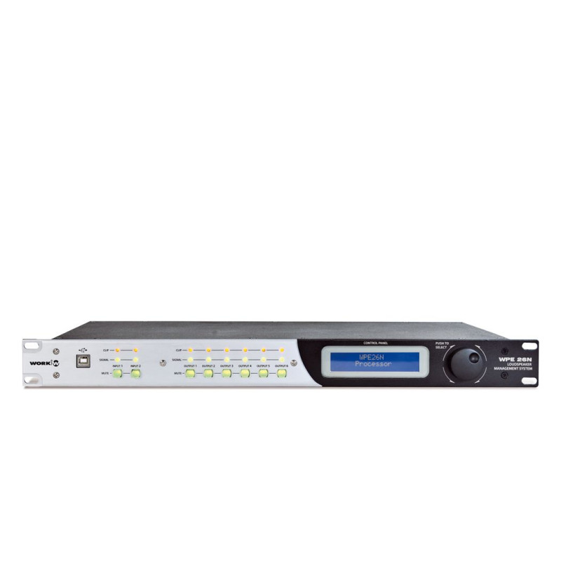 WPE 26N является первой цифровой системой управления громкоговорителями с сетевым подключением. Сила этого процессора заключается в ряде всеобъемлющих функций, а также благодаря мощному процессору DSP и внутренней архитектуре. Он может быть использован в инновационных приложениях, потому что процессор может управляться дистанционно, а также может быть использован с другими контроллерами, которые максимизируют его использование в данном типе установок. С другой стороны, он реализует OSC протокол управления и, благодаря этой функции удаленной настройки процессора, через WiFi, можно управлять с помощью IOS устройств (iPhone, IPAD), Android и Windows). WPE26N имеет USB порт на передней панели, который используется для настройки процессора с помощью WorkCAD программного обеспечения (также используется с Digiline устройств). С помощью этой программы вы можете настроить все