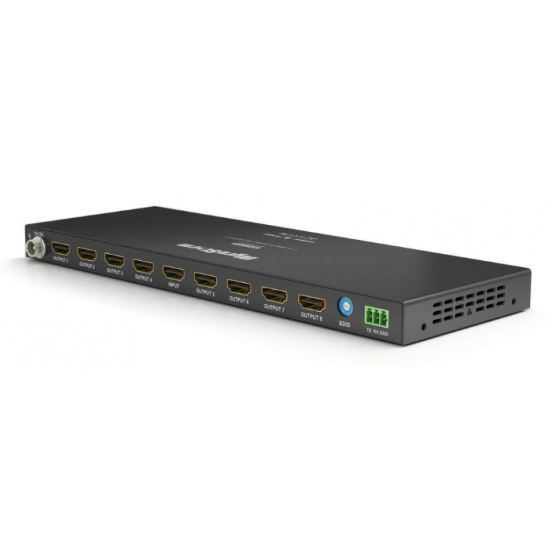 Усилитель-распределитель HDMI сигнала конфигурации 1 х 8. Позволяет подключить один источник сигнала к восьми средствам отображения.