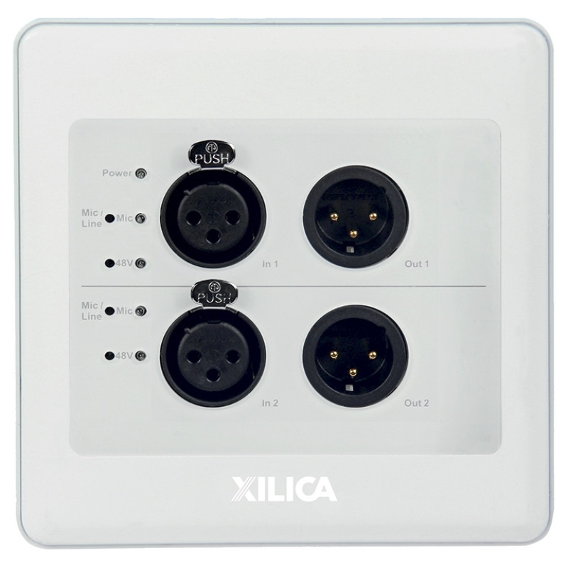 2 входа и 2 выхода балансного сигнала, 1 порт сети Dante. Преобразует входные аналоговые сигналы микрофонного или линейного уровня для передачи их по витой паре с использованием технологии Dante, либо наоборот – принимает до 2 каналов из сети Dante и преобразует их в балансное аудио линейного уровня. Устройство позволяет включить фантомное питание микрофонов 48 В. Управление по IP, питание по PoE 48 В или от блока питания.