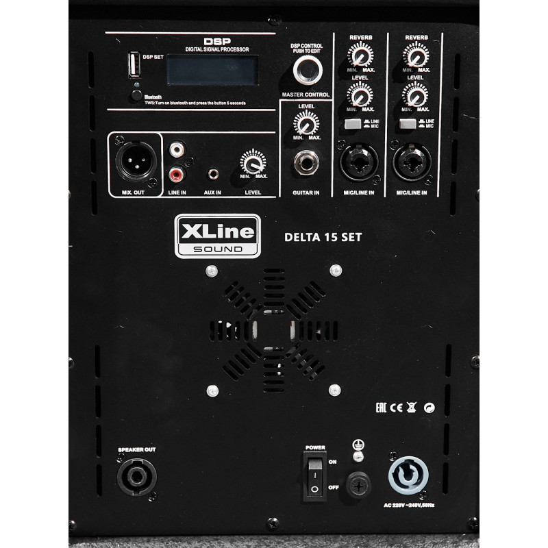В комплект XLine DELTA 15 SET входят два пассивных сателлита с 4-дюймовыми динамиками мощностью 100 Вт, обеспечивающими частотный диапазон от 120 Гц до 20 кГц и чувствительность 113 дБ. Корпус сателлитов выполнен из прочного пластика, что гарантирует долговечность и легкость в транспортировке. Активный сабвуфер с 15-дюймовым динамиком и усилителем класса D мощностью 350 Вт (при 4 Ом) дополнительно предлагает мощный бас в диапазоне 35 Гц - 150 Гц с чувствительностью 117 дБ. Сабвуфер оснащен разнообразными входами, включая 2x RCA, 1x 3.5mm AUX и XLR Combo, а также микрофонный вход и линейный выход XLR. Материал корпуса сабвуфера — МДФ, что обеспечивает отличную акустическую отдачу. Дополнительные функции Bluetooth/TWS и встроенный DSP процессор с предустановками делают этот комплект универсальным и удобным в использовании, а стойка саб-сат обеспечивает стабильность и надежность установки.