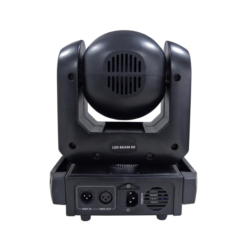 Источником света служит один яркий светодиод RGBW мощностью 60 Вт с ресурсом 50000 часов. Угол раскрытия луча составляет 4°, позиционирование Pan/Tilt равно 540° / 210°. Доступен макро-эффект RGBW светодиодов, а также стробо со скоростью 1-25 вспышек в секунду и шаттер-эффект с измененяемой скоростью. Также имеется диммер от 0 до 100%. Устройство управляется по DMX и имеет режимы работы звуковая активация, автоматический, режим шоу или DMX, а также Stand Alone и Master/Slave. Доступно 8/16 DMX-каналов. Для удобства управления имеется OLED-дисплей. Для подключения служат стандартные разъемы 3-pin XLR In/Out. Прибор имеет класс защиты IP20.