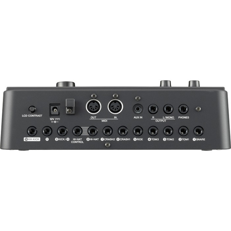 - 12 триггерных входов для пэдов, вход Aux In для подключения внешнего источника звука