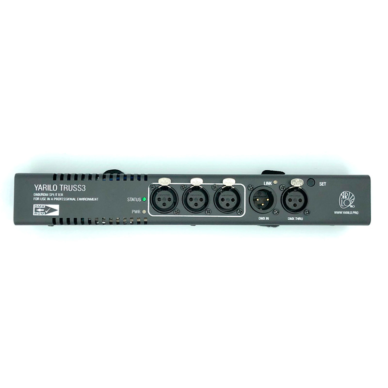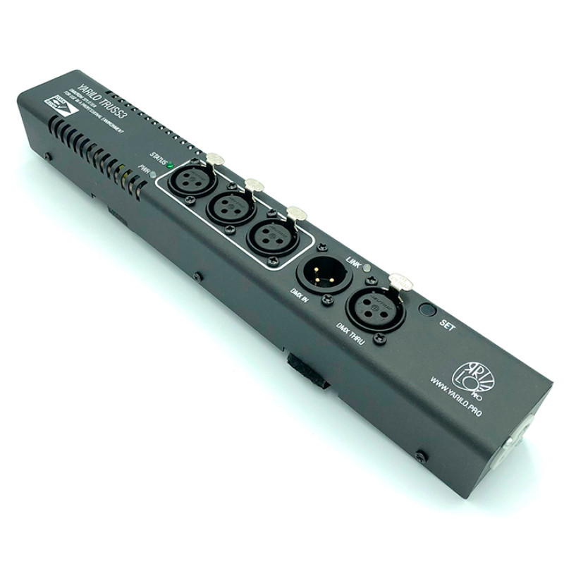 Yarilo TRUSS3 RDM - DMX512/RDM сплиттер для установки на сценическую ферму, предназначенный для распределения, усиления и защиты DMX512 и RDM сигнала при передаче через DMX-кабель.