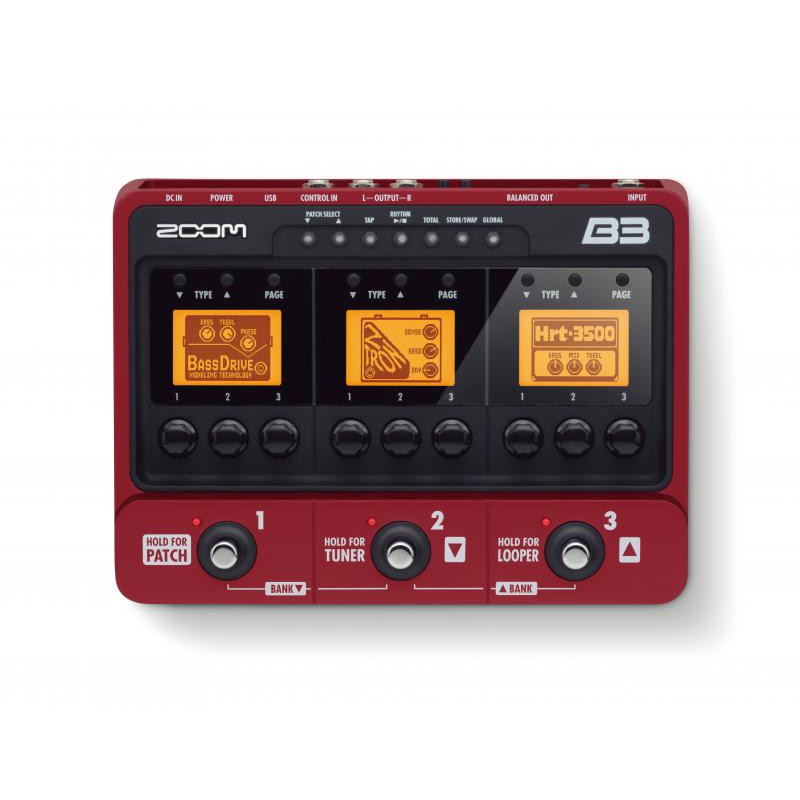 ZOOM B3 содержит 99 типов настроек разнообразных педалей из числа самых популярных гитарных примочек. Возможно использование до трех эффектов в любой комбинации, включая высококачественные стерео-кабинеты и басовые синтезаторы. B3 также содержит патчи, разработанные 4мя всемирно известными басистами: Виктором Вутеном (Victor Wooten (Béla Fleck & the Flecktones)), Дэвидом Эллефсоном (David Ellefson (Megadeth)), Франком Белло (Frank Bello (Anthrax)) и Дагом Вимбишом (Doug Wimbish (Living Colour)). Кроме того, B3 может хранить до 100 Ваших оригинальных творений.